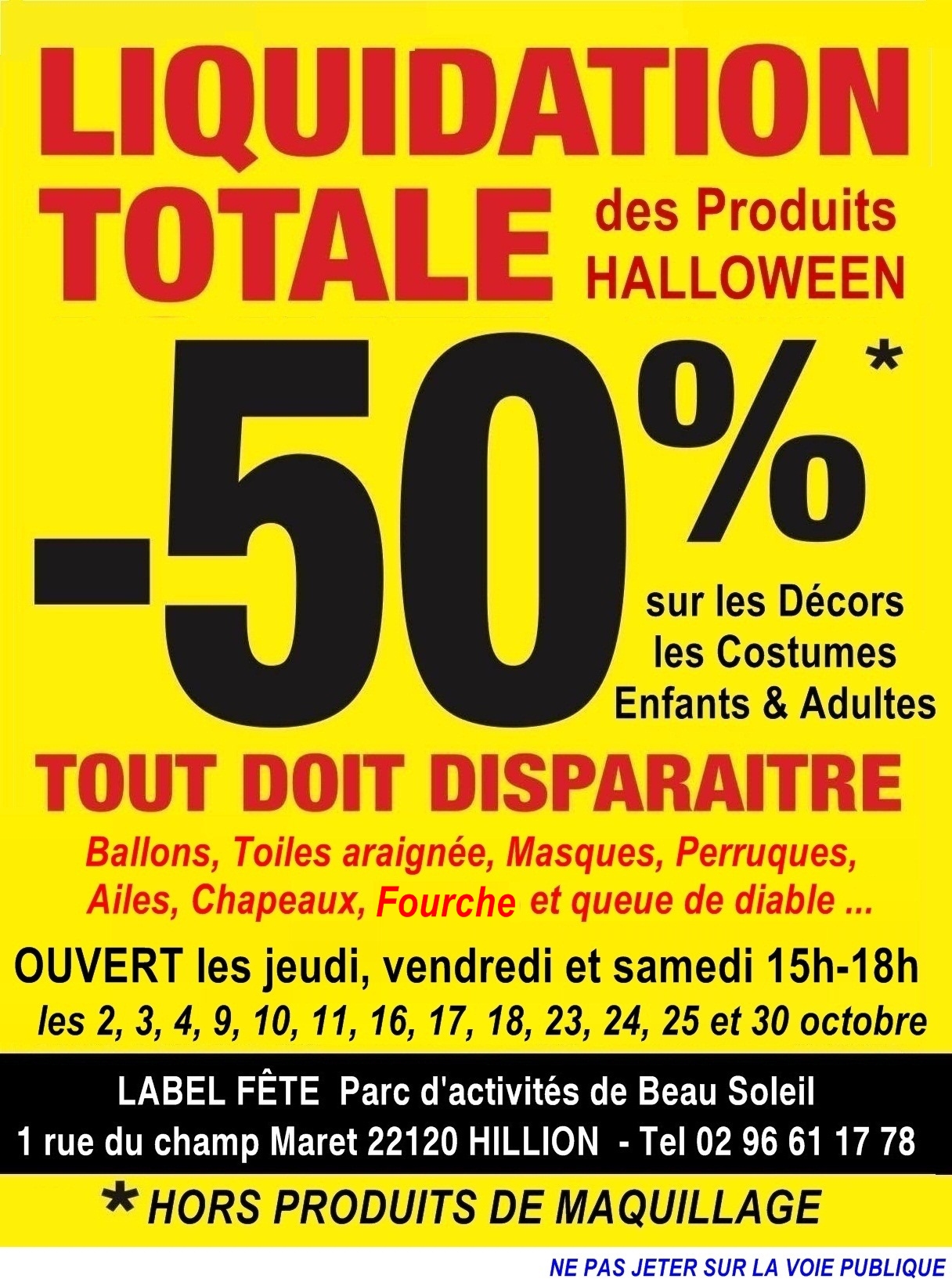 Déstockage Halloween au Magasin Label Fête, jusqu'u 30 octobre 2025